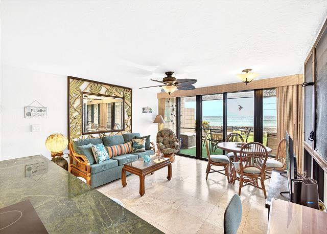 king, shower, sleep sofa /futon, toilet, churches, reefs, restaurants, waterfalls, Television, Smart TV, Clothes Dryer, Hair Dryer, Iron & Board, Linens Provided, Living Room, Parking, Towels Provided, Washing Machine, Shampoo & conditioner, Wifi, Coffee Maker, Dishes & Utensils, Dishwasher, Kitchen, Microwave, Oven, Refrigerator, Stove, Toaster, Dining Table, Kitchen Island, beachcombing, luaus, paddle boating, scenic drives, sight seeing, walking, whale watching, ATM/bank, Babysitter, groceries, Near The Ocean, Ocean View, Oceanfront, Water View, Waterfront, Balcony, Lawn / Garden, Outdoor Grill, Communal Pool, fishing, golf, hiking, jet skiing, snorkeling, surf fishing, surfing, swimming, children welcome, pets not allowed, flexible, recommended, Dining Area, Dining Room, Adventure, Away From It All, Budget, Family, Romantic, Tourist Attractions