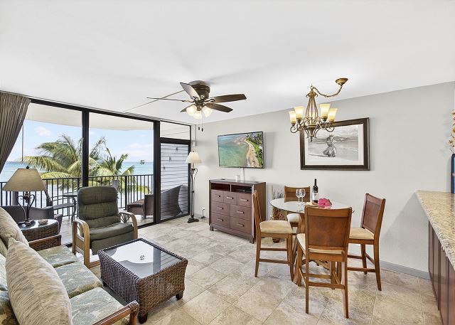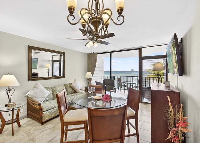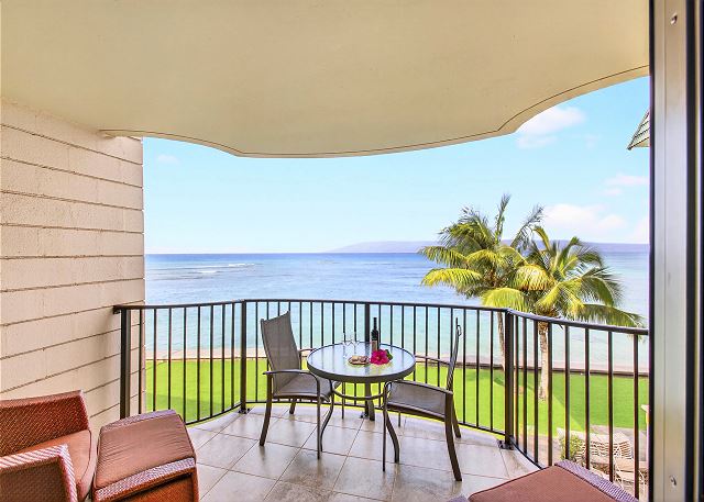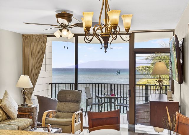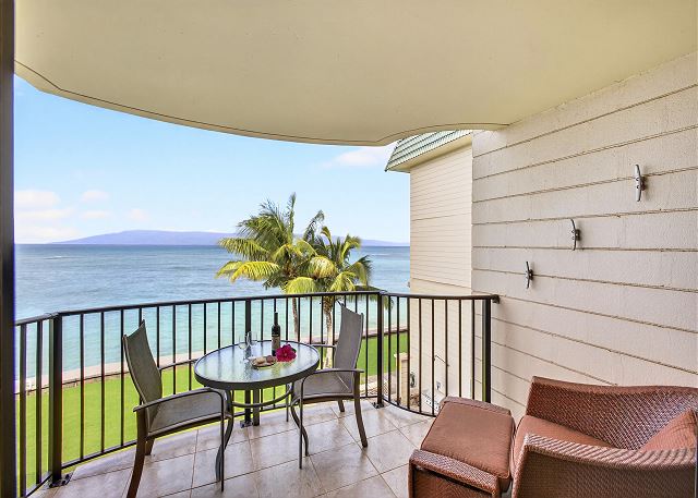 From your lanai, enjoy everything that makes Maui magical: whale watching in season, playful dolphins, graceful sea turtles, and some of the most radiant sunsets in the world. This unbeatable location puts you right on the water, with the islands of Molokai and Lanai in full view.