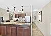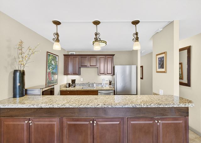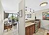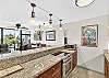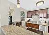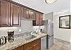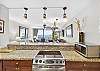 The fully updated kitchen features stainless steel appliances, stone countertops, and all the cookware and utensils you need to prepare meals at home.